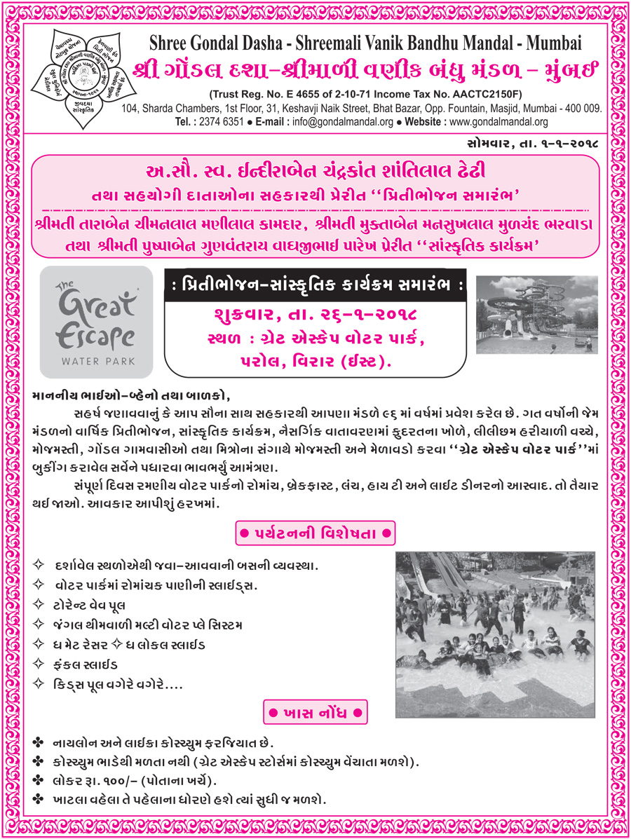 Shree Gondal Dasha - Shreemali Vanik Bandhu Mandal - Mumbai
